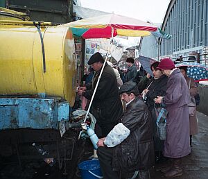 Куда бы ни пошел в Бендеры, мимо рынка не проскочишь. Рядом - церковь, за ней мэрия, позади автовокзал, а вокруг неприхотливые забегаловки, уютные кафе и магазины, где всегда полно народу и играет музыка. Здесь днем и ночью дежурят таксисты; до Кишинева, на запад, 80 километров, до Одессы, на юг - целых сто. Город Бендеры и еще несколько небольших сел, расположенных на правом берегу Днестра, после провозглашения независимости в 90-м году, вошли в состав никем непризнанной Приднестровской Молдавской республики. Этот процесс историк и директор краеведческого музея города Тирасполя Алла Мельничук считает закономерным. Алла Мельничук: Процент молдавского населения был выше в селах, и значительного ниже - в городах. Процент русского населения был значительно выше в городах, чем, скажем, в окрестных селах. Здесь очень много всегда было воинских частей. Естественно, что нижние чины - это местные, а унтер-офицеры - это, как правило, россияне. Естественно, в городах был очень высокий процент русского населения. Для Бендер это тоже не было исключением. С 1812-го года по 1918-й - это была часть России, устроенная по общерусскому образцу, с российским образованием и в пределах российского образовательного, культурного и православного пространства. Ничего удивительного я в этом не вижу. Мумин Шакиров: